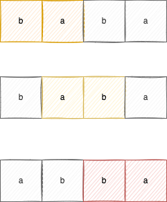 다른 예제 baba를 보면 두번째 b가 0번쨰 b와 중복됙기 때문에